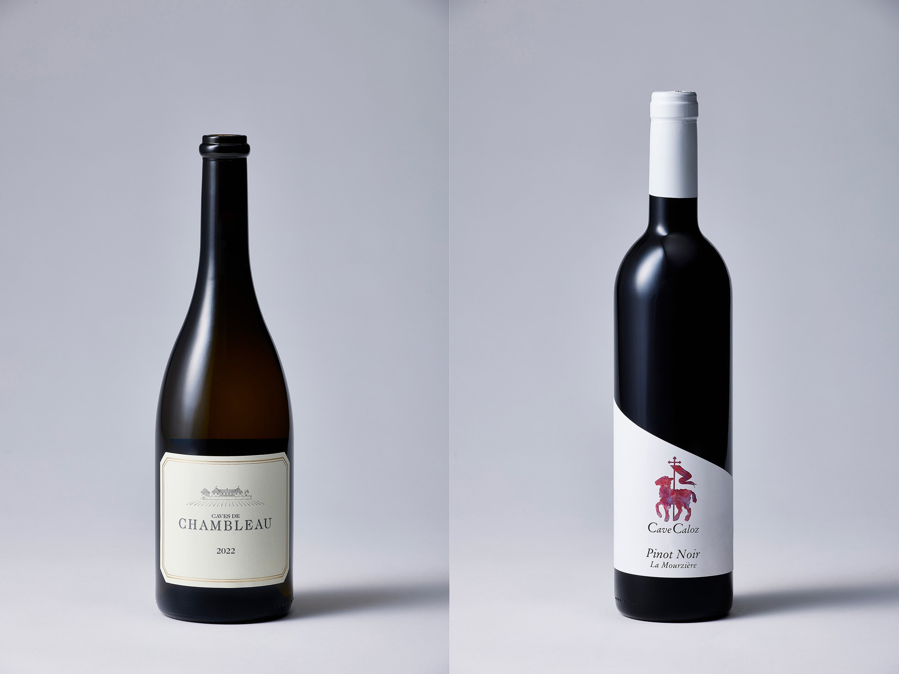 This set includes a white wine from the Swiss canton of Neuchâtel and a red wine from the canton of Valais.