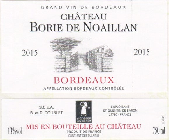 【ベレナール&ドミニク・デュブレ】シャトー・ボリエ・ド・ノエラン/ボルドー・ルージュ 2020 赤